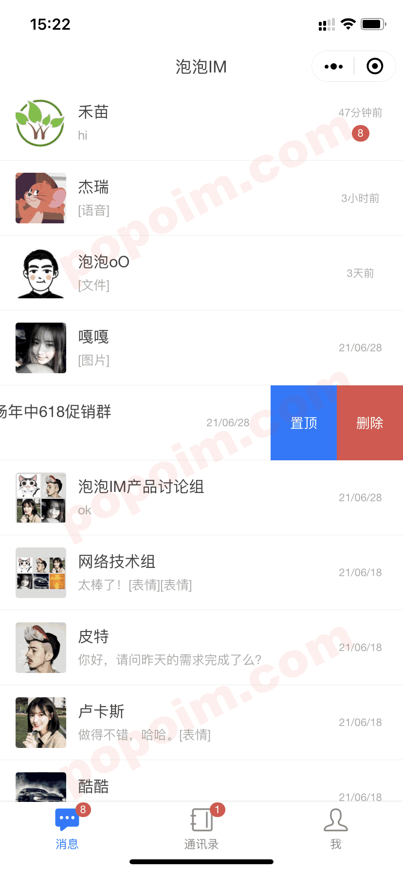 泡泡IM 小程序聊天源码,基于uniapp开发,可用于微信小程序聊天源码。聊天源码开源未加密,可二次开发,无外部依赖,可私有化部署,是一套完整的小程序聊天源码。除了可以打包成微信小程序,还可以打包成App,包括安卓和IOS,也可以打包成H5网页聊天室,也就是一套uniapp聊天源码多端编译使用。源码及数据都在本地服务器,SSL加密安全传输,非常安全可靠。文档全面,接口丰富,方便对接现有项目。购买后提供一对一技术咨询支持。